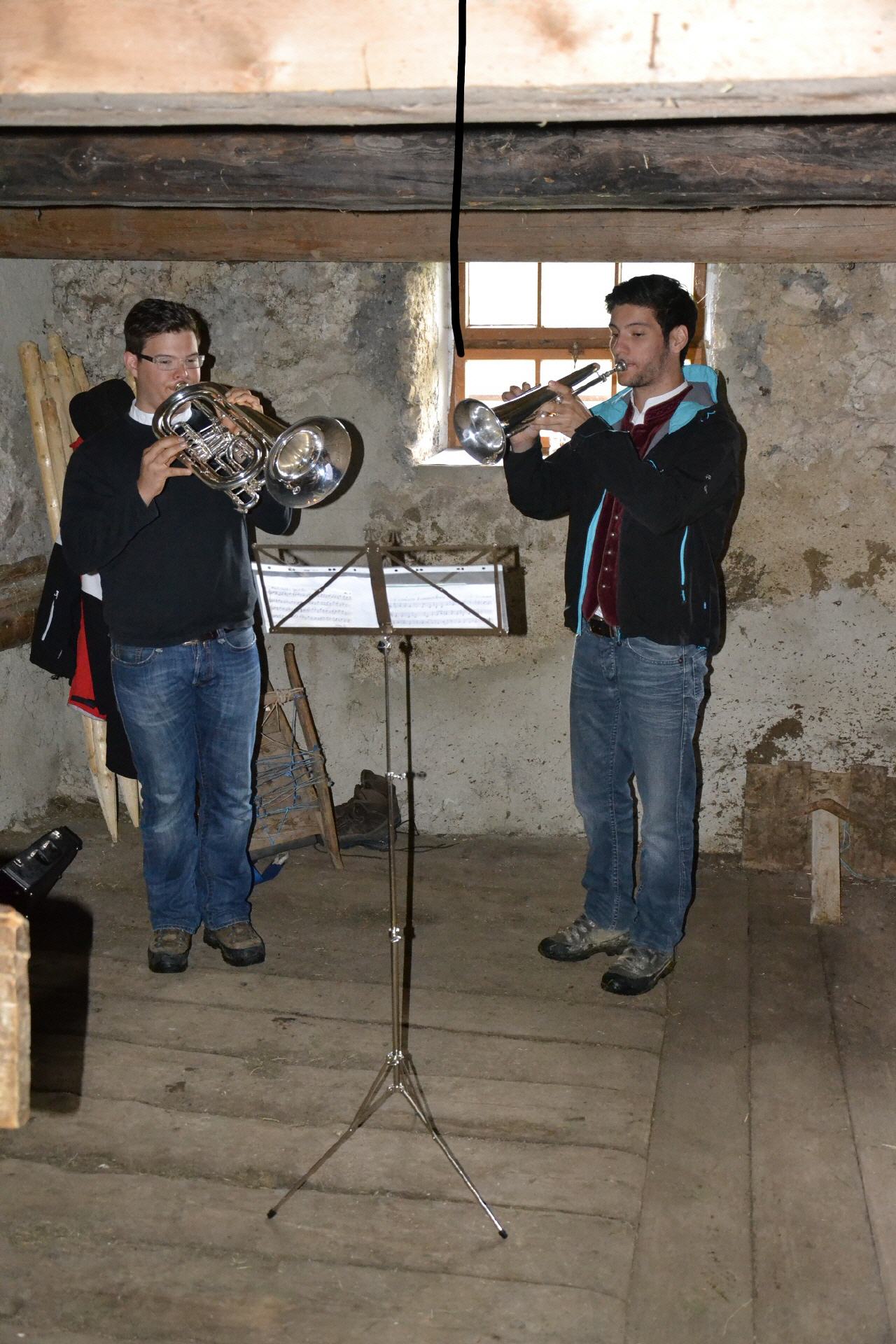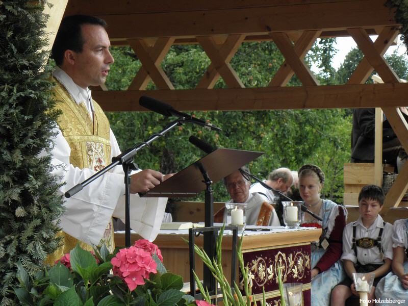 Leider spielte das Wetter nicht so ganz mit - es regnete den ganzen Vormittag in Strömen. Die Feier der Messe musste deshalb in den Stall der Marche-Alm verlegt werden. Trotzdem fanden sich um die 80 „hartgesottene“ Gottesdienstbesucher, meist Vereinsmitglieder, auf dem Lamstoa ein. Herr Pfarrer Palus fand in seiner Predigt wieder einmal treffende, aufmunternde aber auch nachdenkliche Worte. Sebastian und Martin Graf umrahmten die Feier musikalisch.